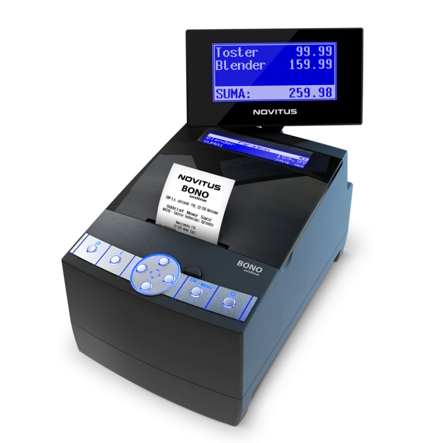 Novitus Bono online posiada zwiększoną bazę towarów (100.000 PLU) oraz nowe funkcjonalności, przez co urządzenie jest jeszcze bardziej atrakcyjne i daje użytkownikowi wiele nowych możliwości.