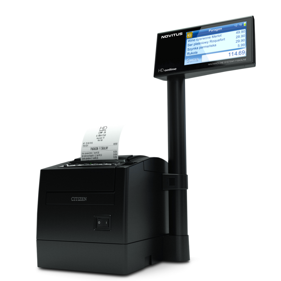 Drukarka Novitus HD Online została wyposażona w niezawodny, trwały i szybki mechanizm drukujący japońskiej firmy Citizen. Technologia tego mechanizmu pozwala na druk nie tylko paragonów, ale i również faktur VAT. Wydruki mogą być realizowane na papierze o szerokości 57 lub 80 mm za pomocą kilku rodzajów czcionek. Wydruk paragonu zawierającego 100 pozycji odbywa się w czasie 5,5 sekundy, a maksymalna ilość towarów na jednym paragonie to 255. Paragon jest odcinany za pomocą profesjonalnego obcinacza papieru montowanego w drukarce w standardzie.